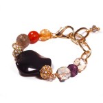 This bracelet features a turquoise color woven parachute cord with three (3) different glass, crystal faceted and/or stone beads and also features a braided gold flower charm ( 18 mm) and a mother of pearl heart (12 mm).