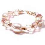 This bracelet features a dark green woven parachute cord with three (3) different glass, faceted crystal and/or stone beads and also features a braided flower gold charm ( 15 mm) and a green foil glass heart (16 mm) charm.