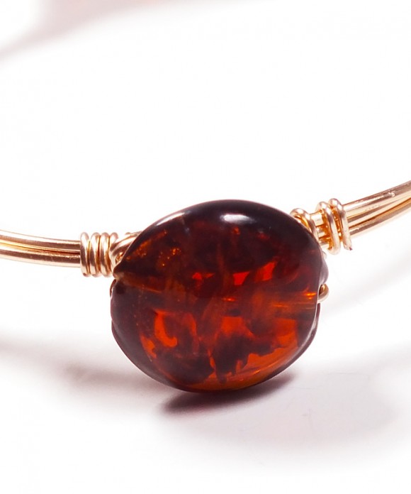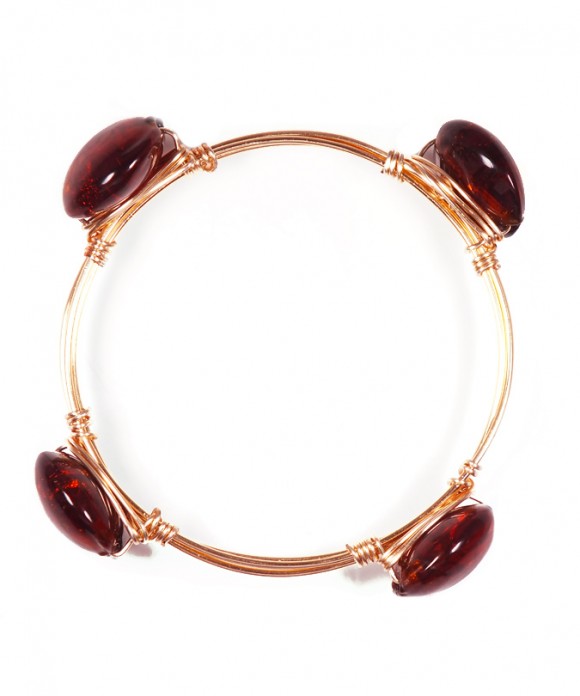 This Bracelet features a Gold Bangle with four Brown Glass Round Beads (20 mm) attached.