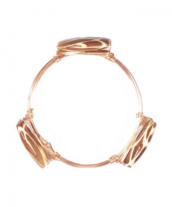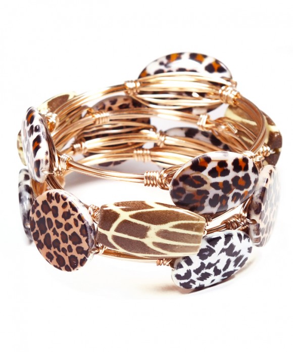 This Bracelet features a Gold Bangle with three Animal Print Rectangular Resin Beads (30×16 mm) attached.
