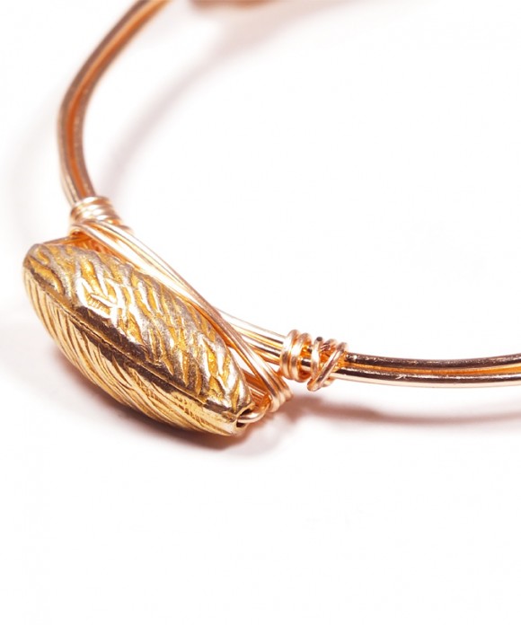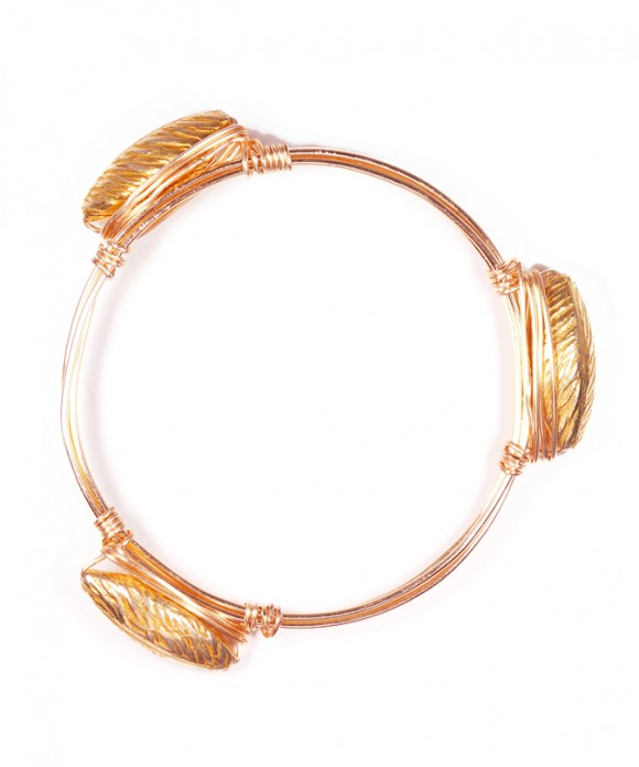 This Bracelet features a Gold Bangle with three 18 K Gold Overlay Zebra Pattern Oval Beads (25×10 mm) attached.