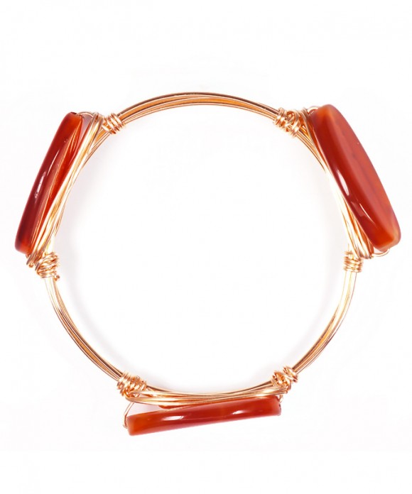 This Bracelet features a Gold Bangle with three Carnelian Flat Oval beads (35 mm) attached.