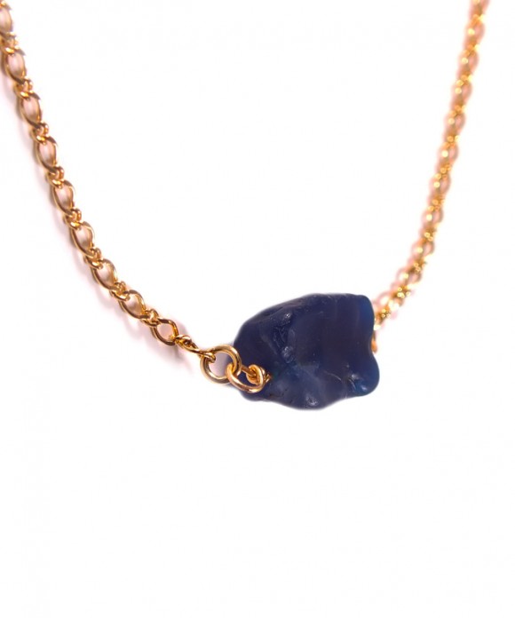 This necklace features a mini Gold Filled chain and one beautiful handcutted and hammered Dark Blue Agate Stone (16×12 mm), surrounded by two freshwater round pearls (4 mm). A Gold Filled lobster lock ( 10×6 mm).