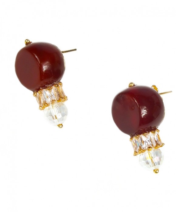 These earrings feature a Carnelian Round Polished Nugget (14 mm) and a Multi Faceted Clear Crystal ( 6 mm) separated by a beautiful Gold Filled Ring (8×4 mm) with Crystal Faceted Baguettes !!!