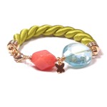 This Necklace features a beautiful Gold-Filled-Embedded Emerald and Terracota-Colored Heated Agate piece (46×33 mm) at the center, accompanied on the sides by two round polished gold filled beads (14 mm), two polished red agate round beads (12 mm) and two polished green agate round beads (8 mm). The chain is Gold Filled and features 10 and 6 mm rings, plus 1″ gold filled chain extension. For easier fastening there is a large gold filled lobster clasp (15×10 mm).