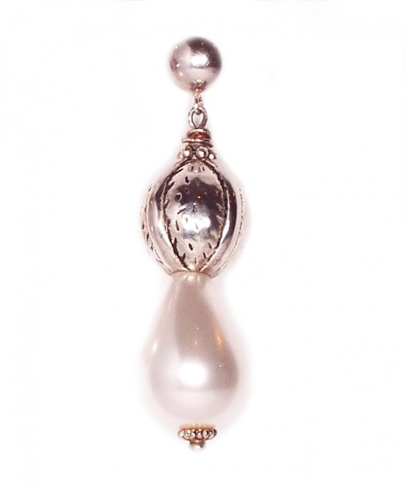 These earrings feature a simple Sterling Silver Earstud (8mm) from which hangs a Silver Baroque Ball (16mm) and a Freshwater Teardrop Pearl (20mm). Not only beautiful, but looks great on formal or informal outifts.