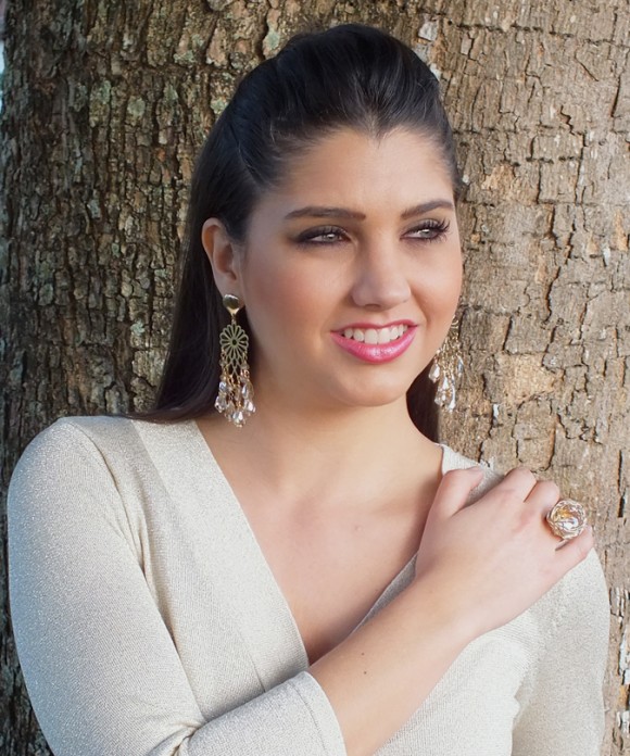 These earrings feature multiple (7) Champagne Faceted Crystal Teardrops (12 x 6 mm) along with Champagne Faceted Crystal Rondelles (4 mm), both attached to an Arabesque Gold Filled Piece (40×25 mm), that is hanging from an Inverted Polished Gold Filled Teardrop Earstud ( 17×14 mm),