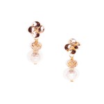 These earrings feature multiple (7) Champagne Faceted Crystal Teardrops (12 x 6 mm) along with Champagne Faceted Crystal Rondelles (4 mm), both attached to an Arabesque Gold Filled Piece (40×25 mm), that is hanging from an Inverted Polished Gold Filled Teardrop Earstud ( 17×14 mm),