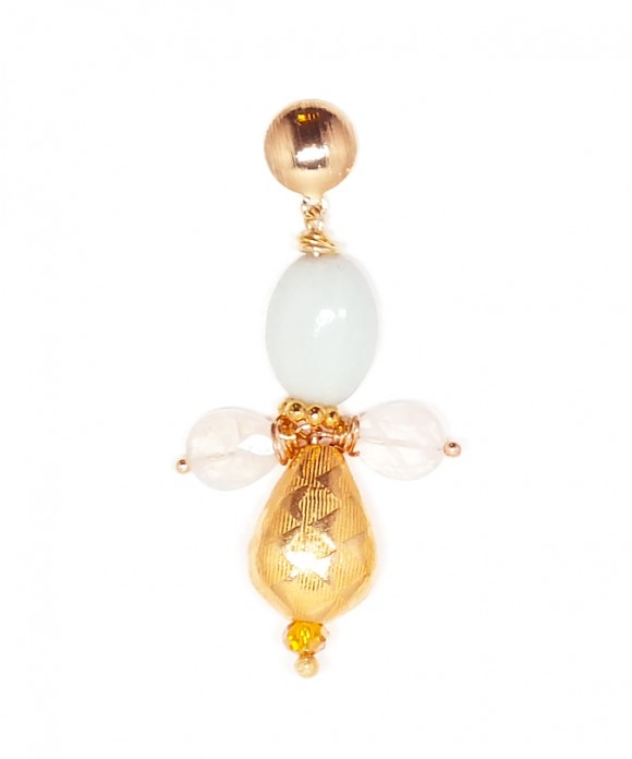 These earrings feature an Amazonite Oval Bead (10×15 mm), two Moonstone Faceted Teardrops (10 x 5 mm) and an inverted Baroque Gold Filled Puffed Teardrop (16×12 mm), all nicely arranged under a Small Round Gold Filled Earstud (8 mm). Check out the matching Necklace !!!